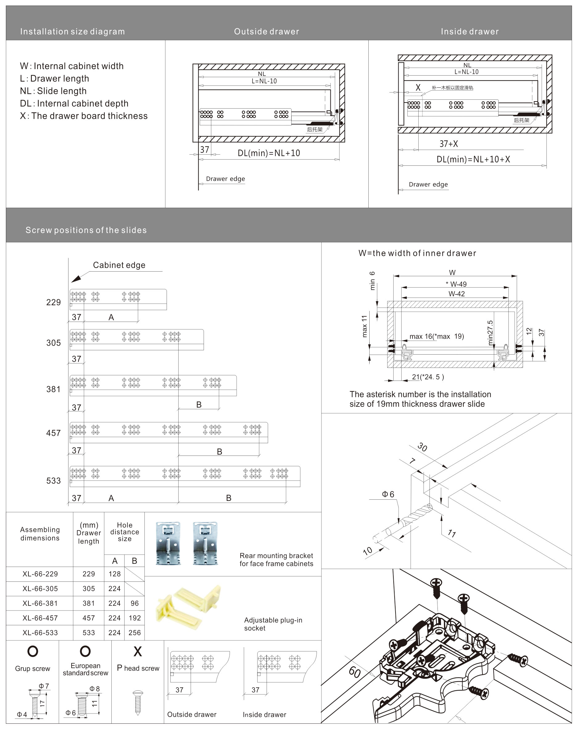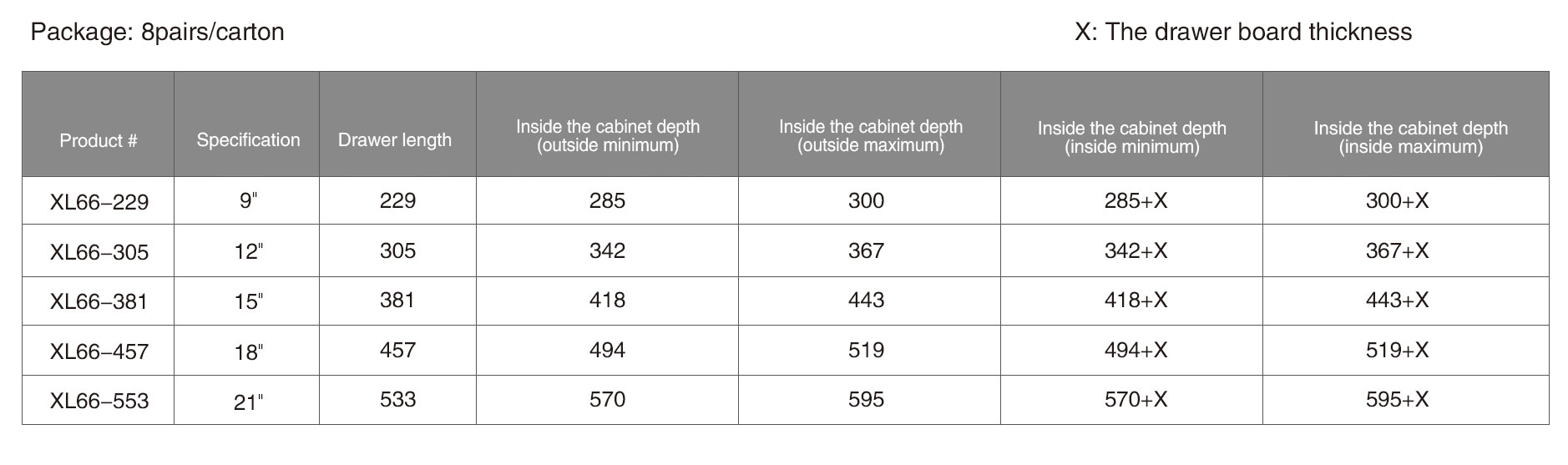 JQ-66 American-style soft closing full extension undermount slide(Max drawer slide thickness: 16mm/19mm,with locking brackets)