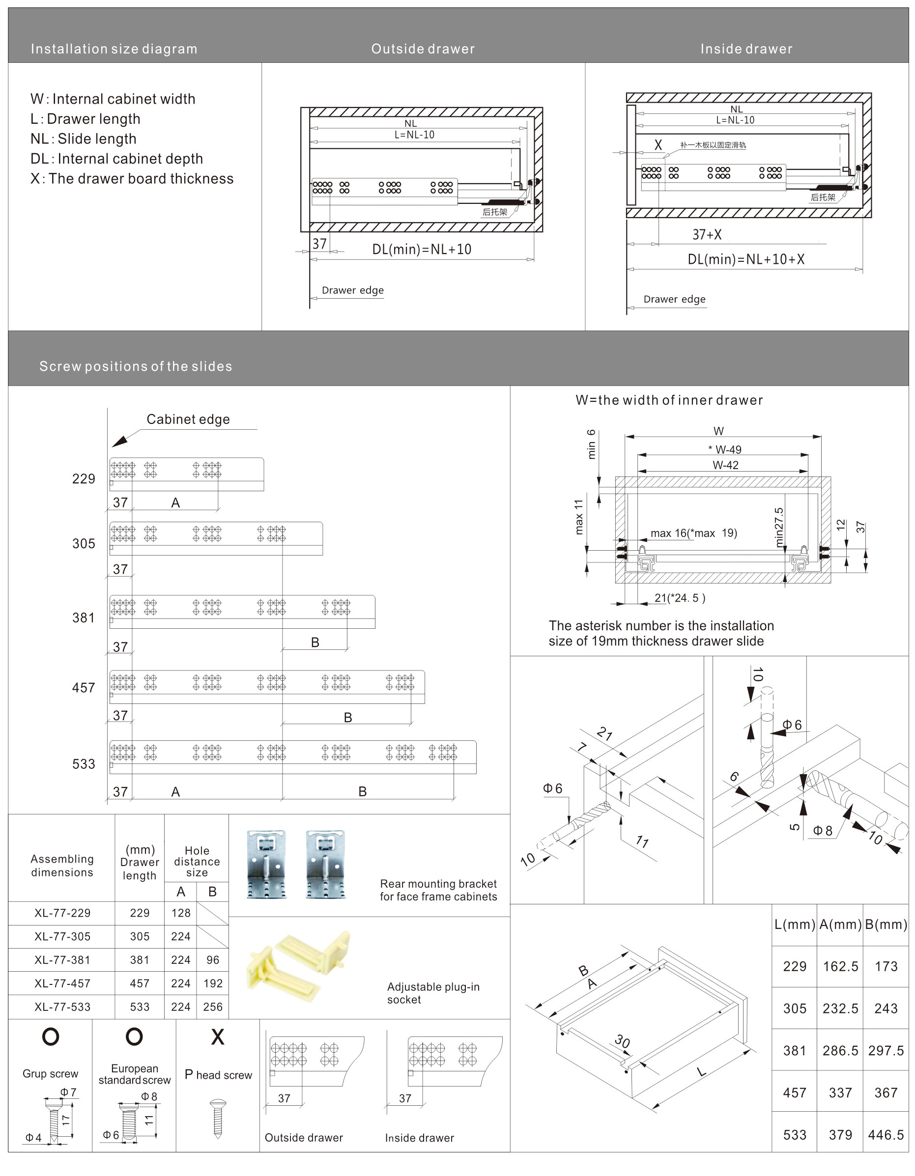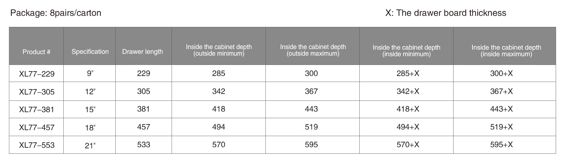 JQ-77 American-style soft closing full extension undermount slide(Max drawer slide thickness: 16mm/19mm,with locking pin and damper)