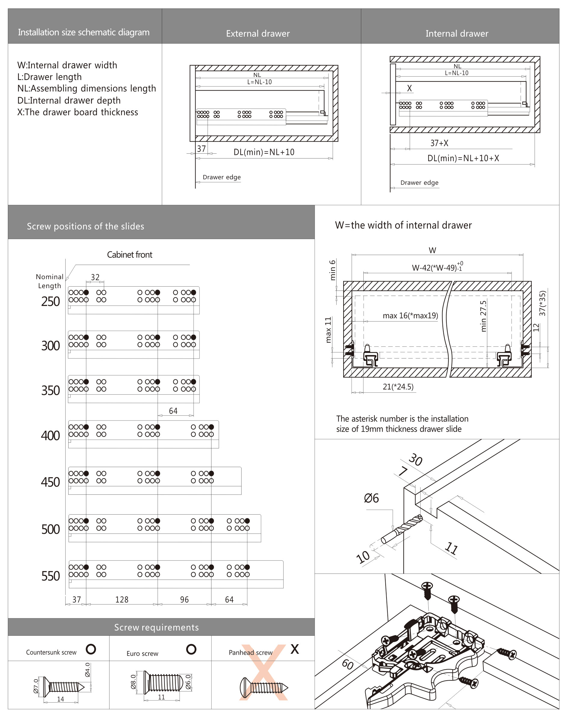 JQ-88 European-style soft closing full extension undermount slide(Max drawer slide thickness: 16mm/19mm,with locking brackets)