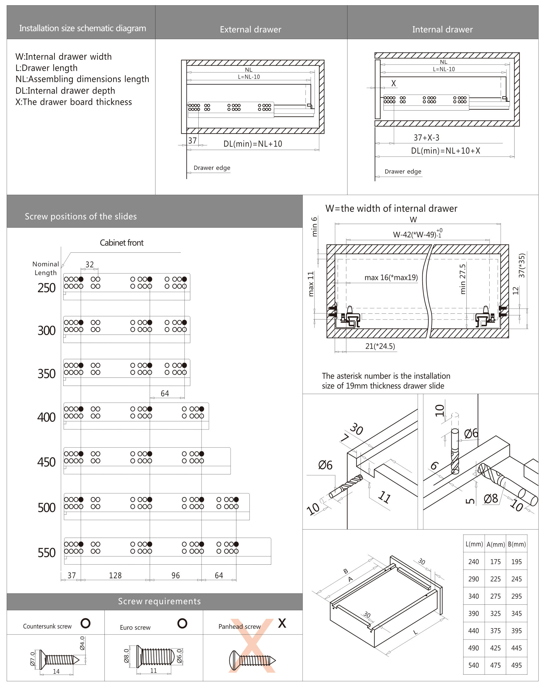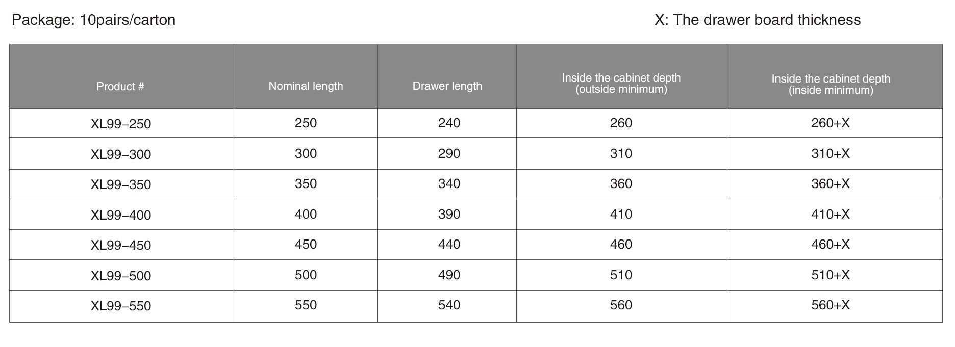 JQ-99 European-style soft closing full extension undermount slide(Max drawer slide thickness: 16mm/19mm,with locking pin and damper)