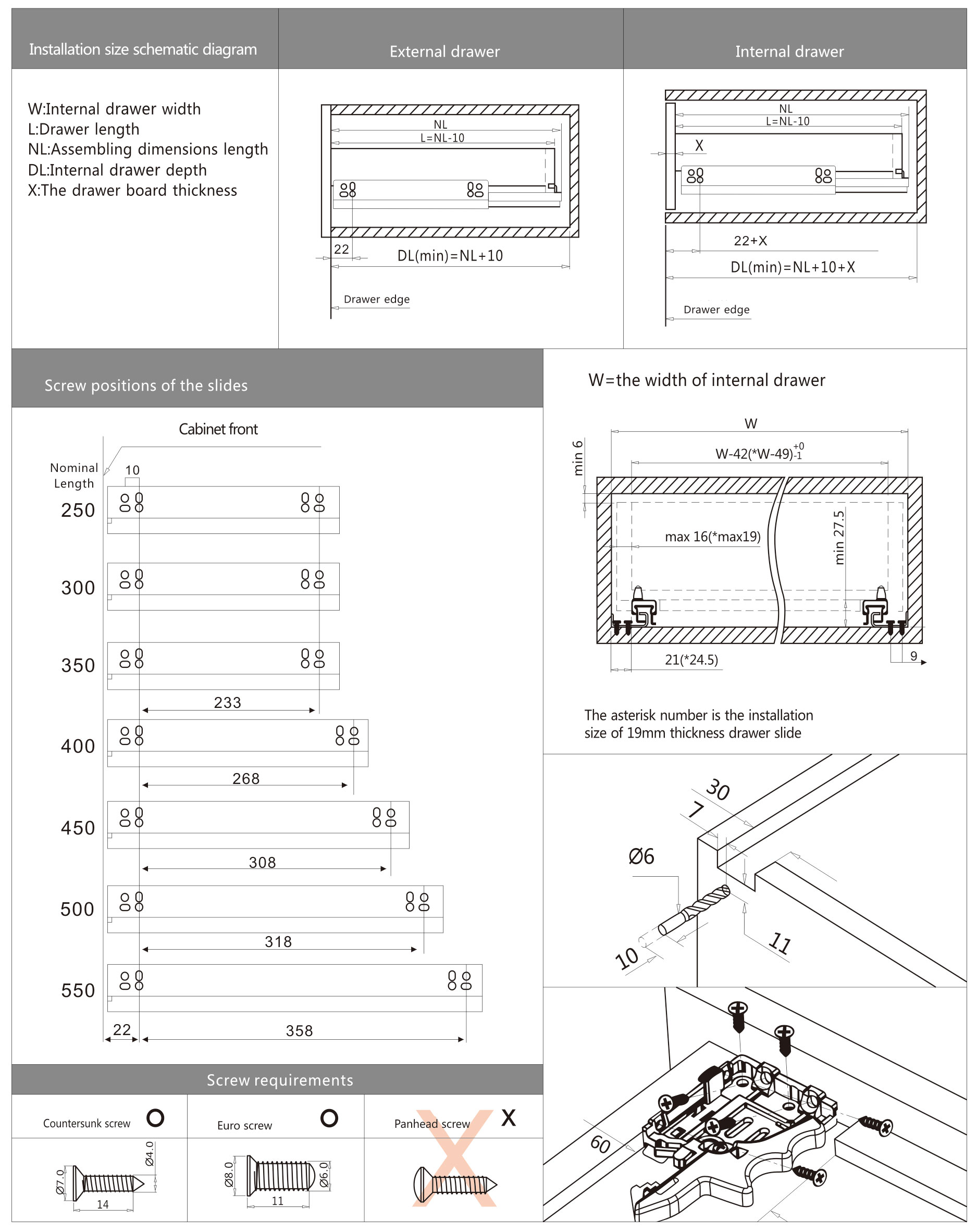 JQ-100 European-style soft closing full extension undermount slide(Max drawer slide thickness: 16mm/19mm,with locking brackets)