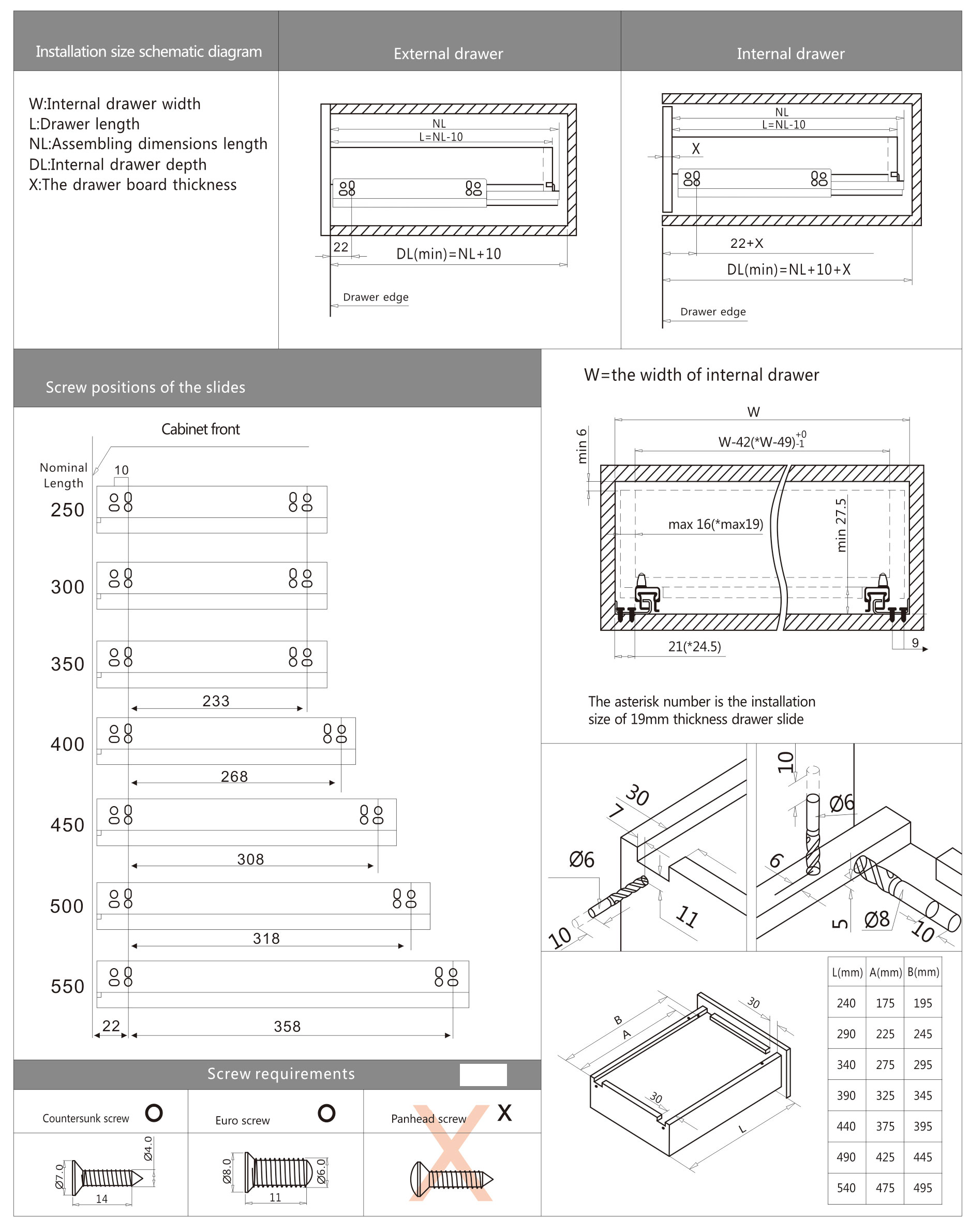 JQ-101 European-style soft closing full extension undermount slide(Max drawer slide thickness: 16mm/19mm,with locking pin and damper)
